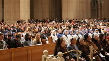 Religiosas y peregrinos en la Basílica de la Inmaculada de Washington, en la vigilia previa a la Marcha por la Vida 2025: