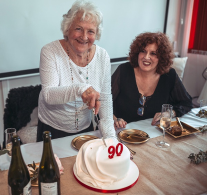 Joan Hunt, junto a Marisa Martín, en la celebración de su noventa cumpleaños.