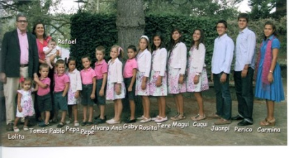 Rosa Pich-Aguilera, barcelonesa, ha dado a luz a 18 hijos. Ella es la novena de una familia de 16 hermanos. Su marido, José María Postigo, "Chema" para todo el mundo, es el séptimo entre 14 hermanos.