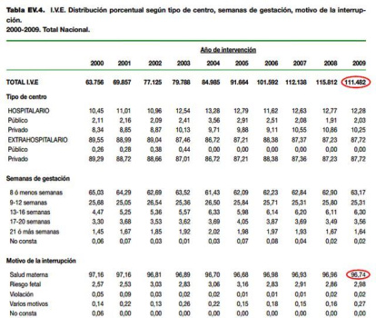 La declaración menciona el caso de España como paradigmático del "coladero" del aborto que supone la indicación o supuesto de la "salud mental" de la madre. En efecto, en 2009, último año de vigencia de la ley de supuestos, hubo en nuestro país 111.482 abortos, de los cuales en un 96,74% se alegó riesgo para la salud de la madre, en su práctica totalidad riesgo psicológico.
