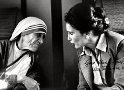 Mercedes Arzú, con la Madre Teresa de Calcuta durante un vuelo a Washington, D.C. en 1986.