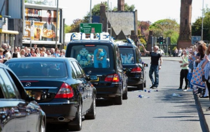Muchos de ellos portaban camisetas del Alfies Army (El Ejército de Alfie), un grupo de Facebook que reunió a cientos de miles de personas para apoyar la causa de esta familia. Como gesto hacia ellos, Tom y Kate, padres de Alfie, dijeron que aunque querían una ceremonia privada pasarían por las inmediaciones de Goodison Park, campo del equipo de fútbol del Everton, para que todas ellas pudieran despedirse.