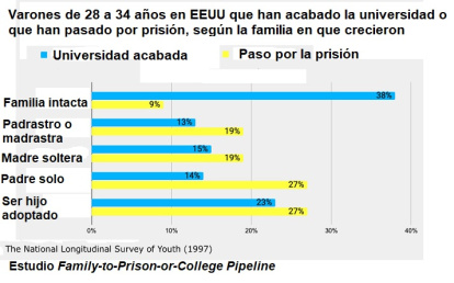 "La estructura familiar es más predictiva que la raza a la hora de considerar estos resultados de vida", señala el estudio, del que hay que destacar que está realizado en EEUU, donde la cuestión racial provoca diferencias en el nivel académico y de número de delitos, de ahí la comparativa utilizada para este estudio familiar.