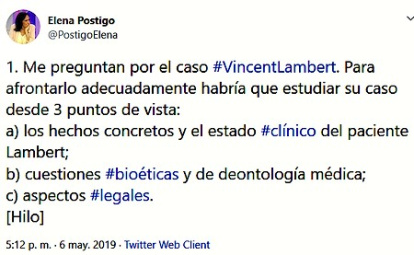 La profesora Elena Postigo, doctora en Bioética, ha expuesto en un hilo en Twitter la historia del caso Vincent Lambert y todas las cuestiones morales y jurídicas implicadas. Pincha aquí para leer el hilo completo.